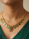 A classic Palakka design necklace featuring elegant green enamel leaves highlighted with red stone accents, beautifully crafted in a premium gold-finished frame. This timeless piece reflects traditional South Indian artistry, making it ideal for temple wear, festive occasions, and traditional functions.
