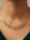 A stylish gold-plated necklace designed with elegant green drop-shaped stones that hang beautifully along the neckline. The minimal chain combined with vibrant green droplet charms creates a classy, feminine, and modern look— perfect for both daily wear and festive dressing.